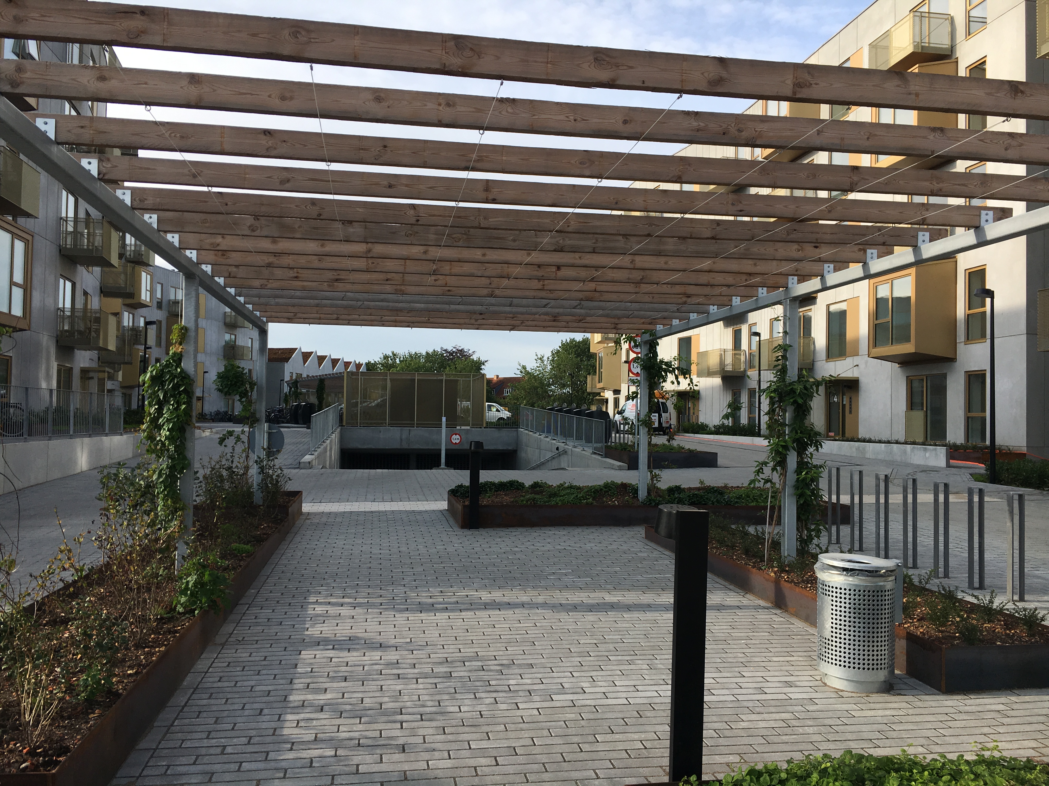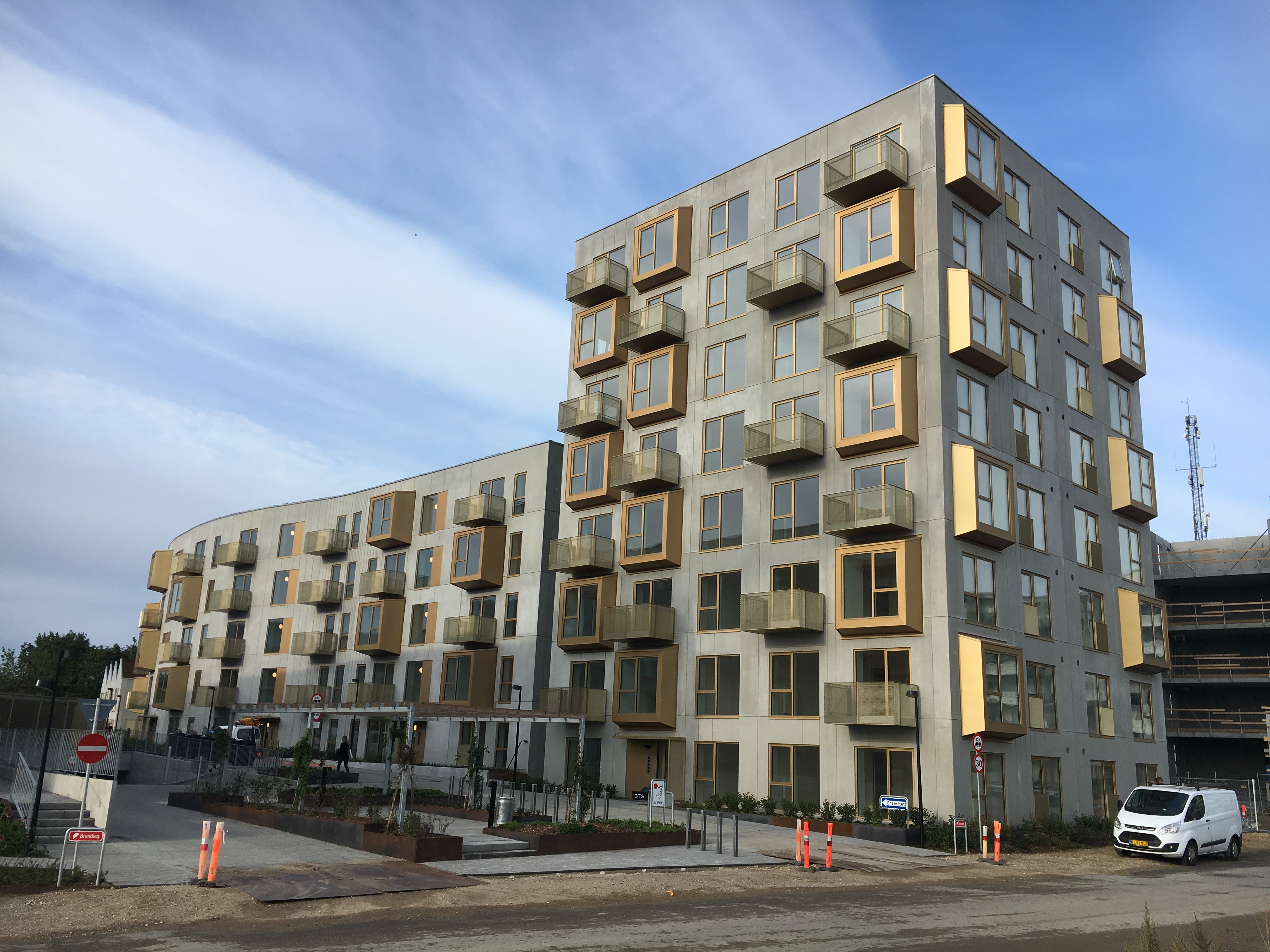 Projektet är beläget i ett tidigare industrikvarter där Aarhus Sporveje tidigare haft sina garage. Byggnaderna är ritade av Sleth och Arkitema Architects i en spännande och särpräglad arkitektur där rå betong möter gyllene burspråk, fönster och altaner.